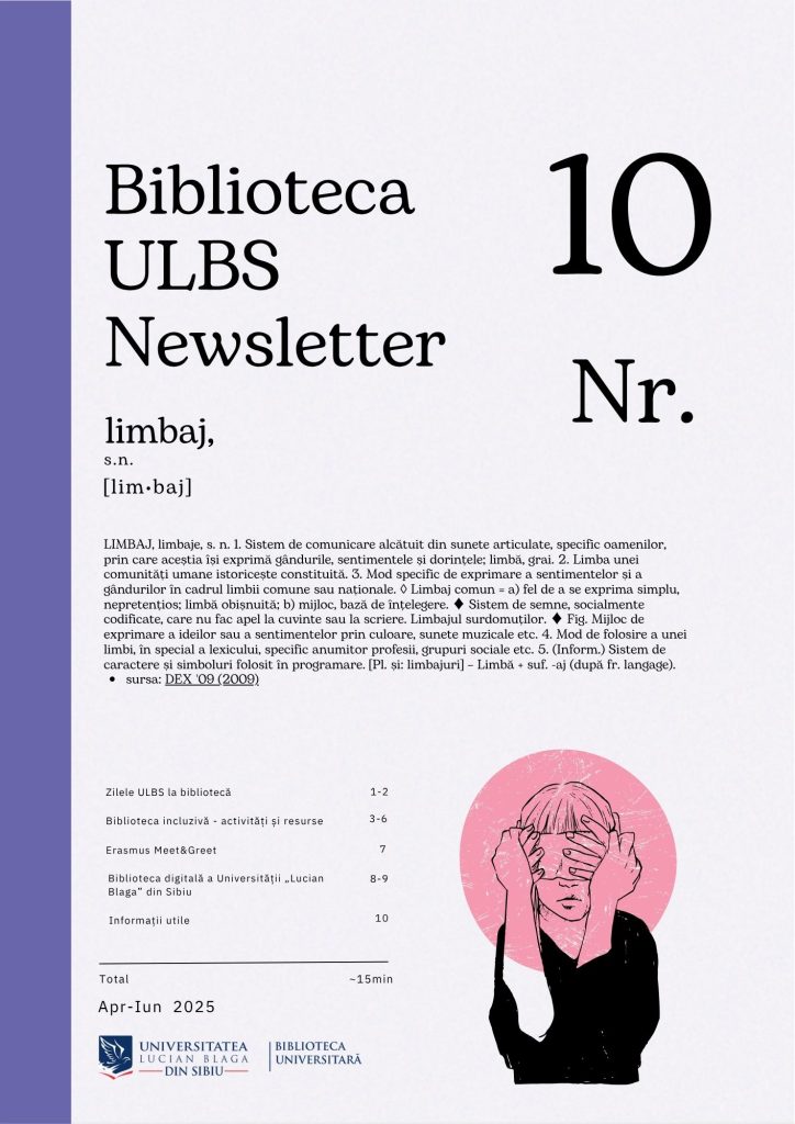 Newsletter-ul Bibliotecii ULBS este menit să aducă în prim plan cele mai importante evenimente și activități desfășurate în cadrul bibliotecii, fiind un produs de informare suplimentar, care se alătură celorlalte existente: rapoarte anuale, știri publicate pe site-ul propriu și pe cel al ULBS, postări pe canalele de social media.